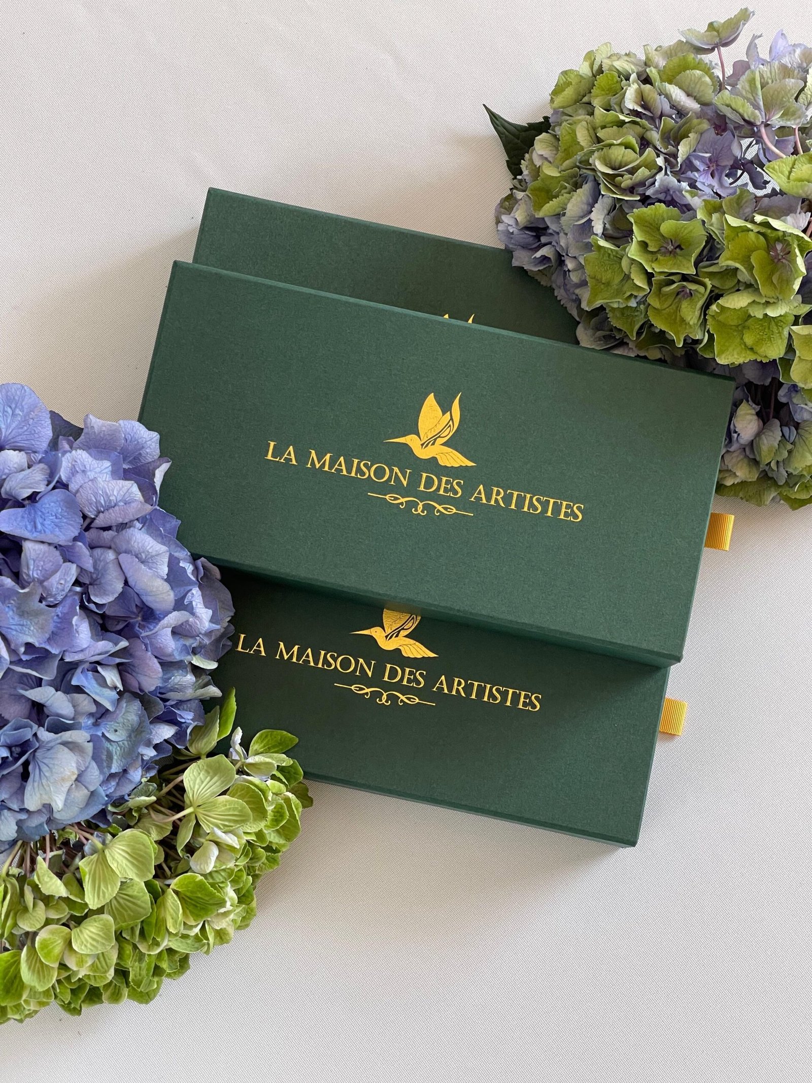 Each box is a treasure in itself—crafted from sustainable materials and adorned with pressed botanicals from our own garden.