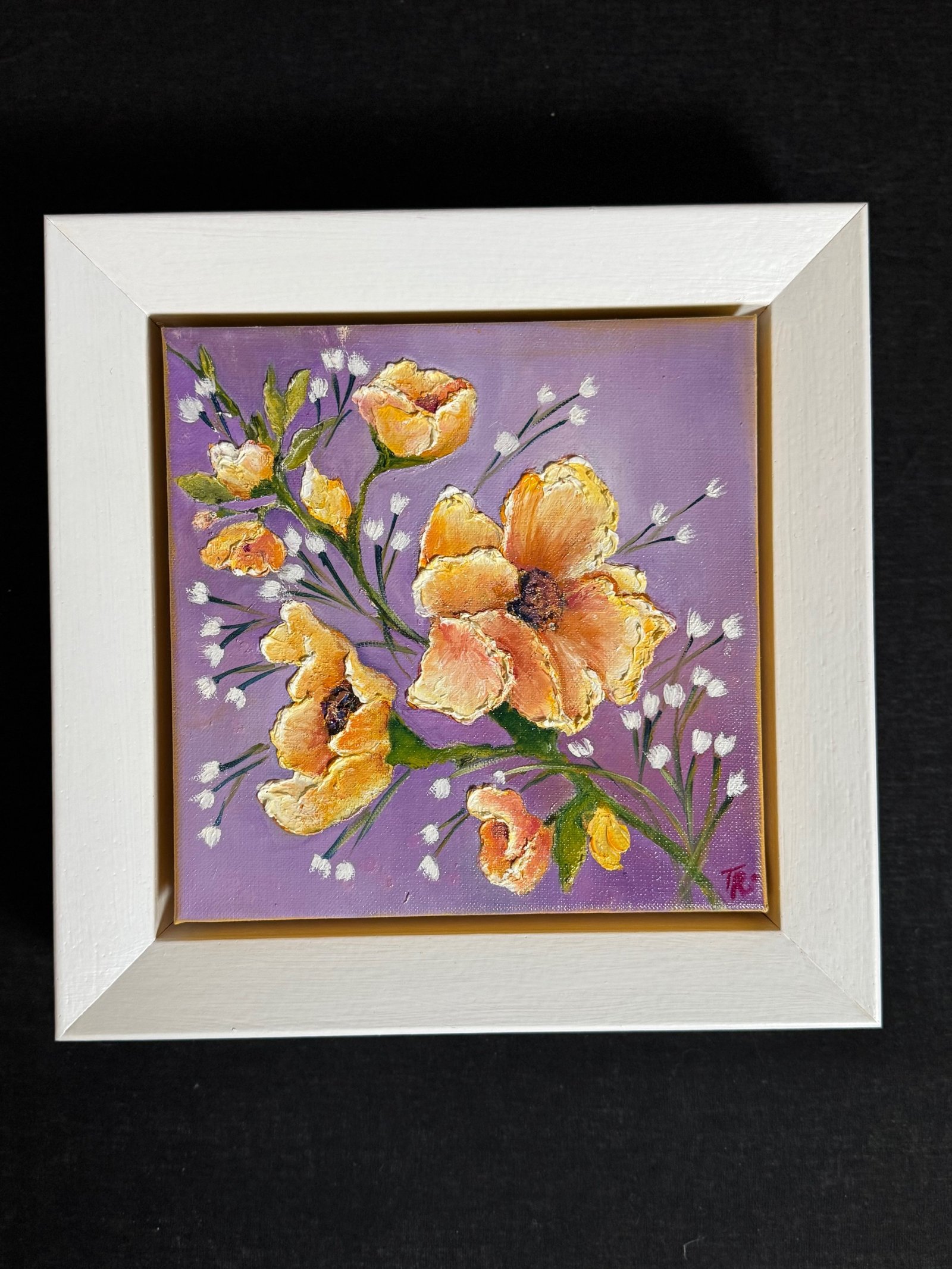 A riot of blooms bursts to life across the canvas, each petal rendered with rich texture and vibrant colour. Layers of oil paint capture the delicate movement, light, and depth of the flowers, evoking their fragrance, energy, and ephemeral beauty. The composition celebrates nature’s vitality, inviting the viewer to pause and immerse themselves in a moment of radiant growth and flourishing life.