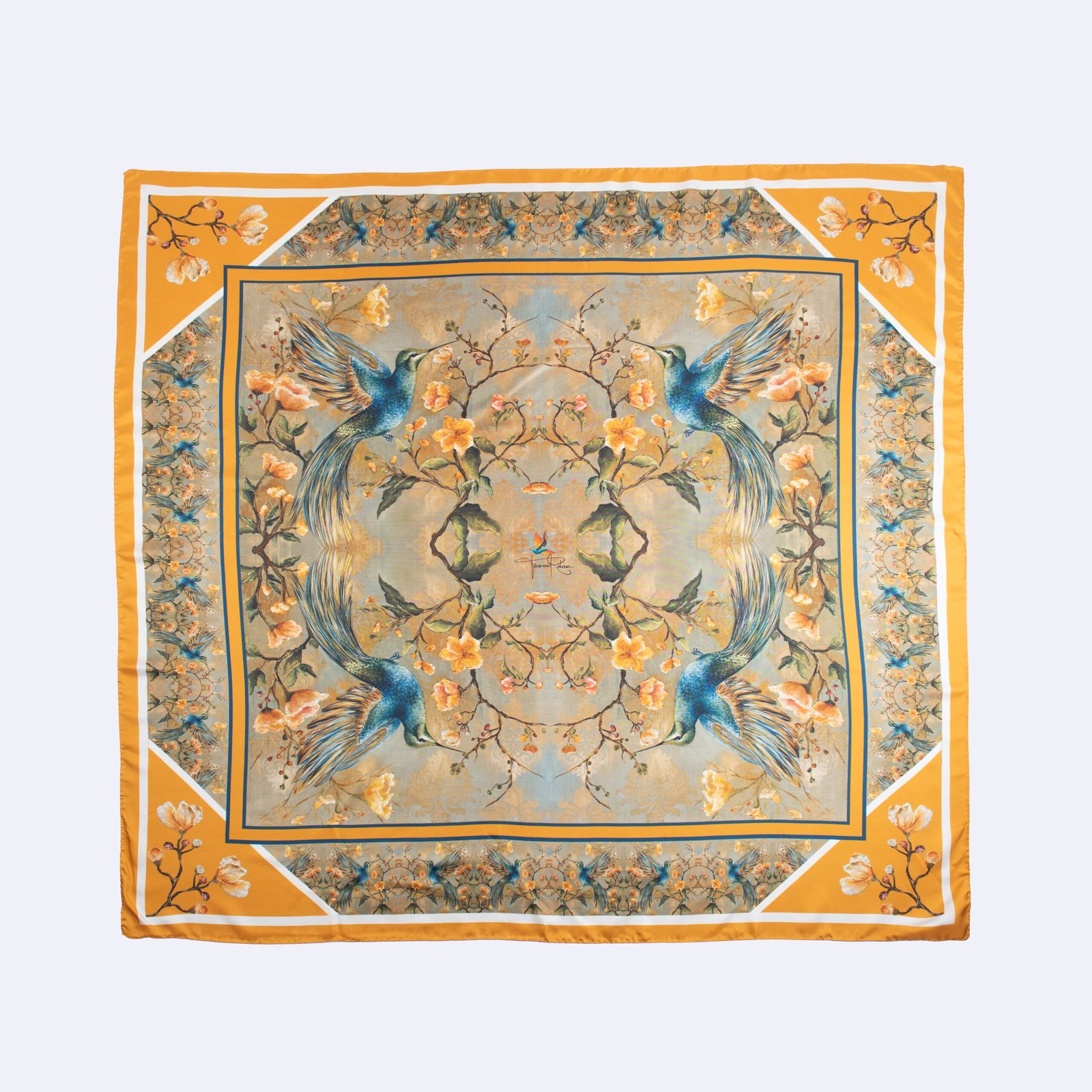 Elevate your style with this satin twill scarf inspired by my original oil paintings, where hummingbirds hover delicately among flourishing blooms. The artwork is translated onto luxurious fabric with radiant clarity, capturing the richness of oil paint, the depth of colour, and the soft play of light across each petal and feather.